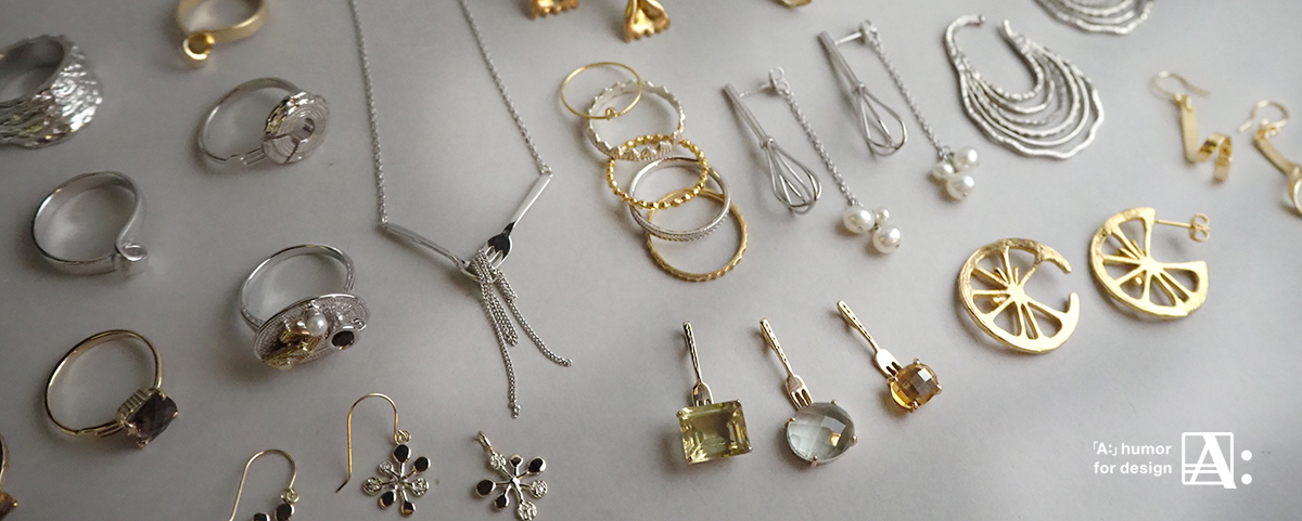 日常の何気ない光景を切り取り、さりげないユーモアとモチーフを活かしたデザインジュエリー。