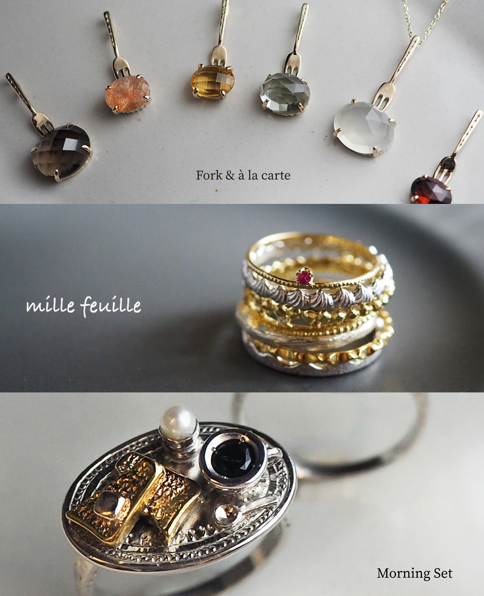 食べるひとときのおいしいカタチや瞬間の物語などをモチーフに込めたデザインジュエリーシーリーズ。